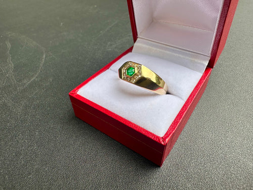 #737 - 14kt Yellow Gold,Emerald & Diamond Ring Size 10