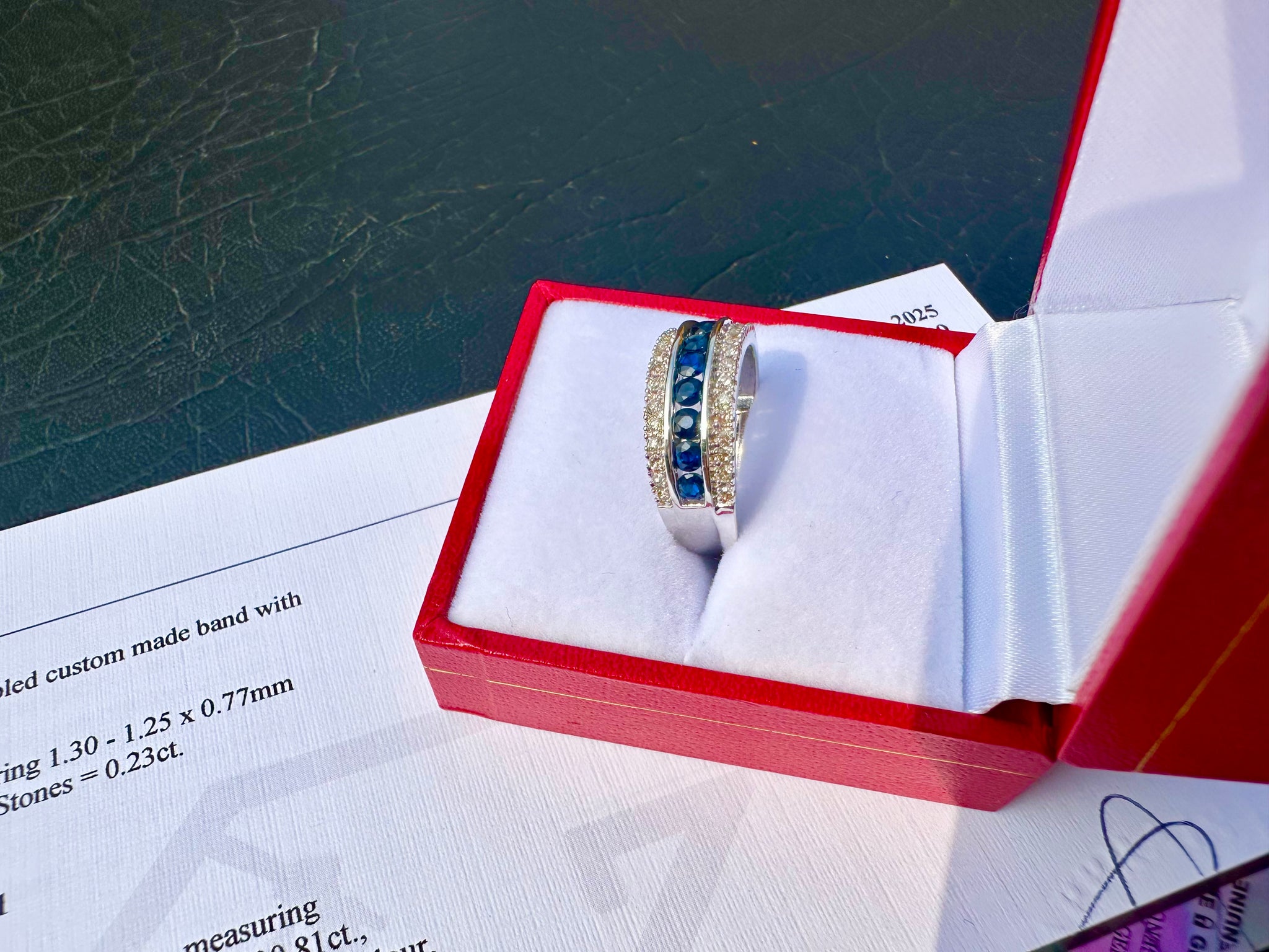 • Load image into Gallery viewer, #609 - 14kt White Gold, Sapphire & Diamond Band, Size 7