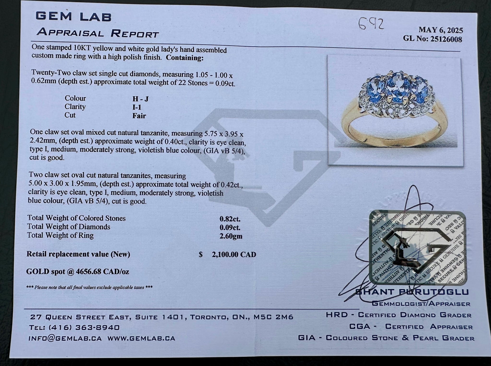 #692 - 10k Yellow Gold, Tanzanite & Diamond Ring, Size 5 3/4